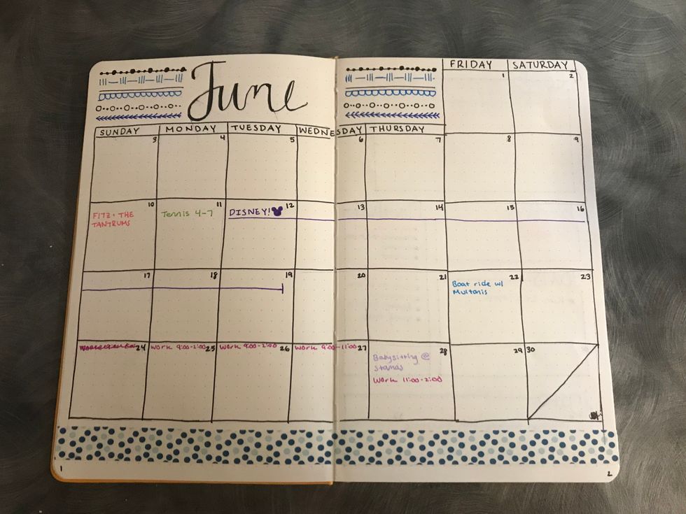 Every organizational planner needs a calendar, so I decided to create my own. I use these pages to write down obligations I have each day, and this helps me keep track of everyday events in a simple yet effective way.