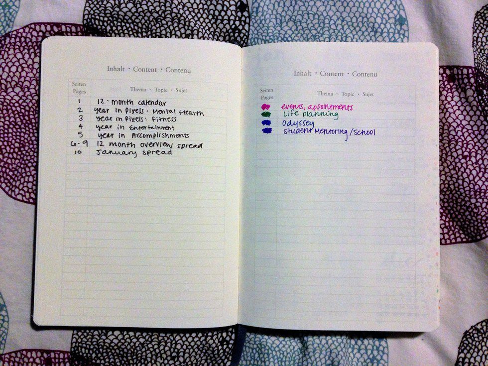 Index: a way to keep track of what is where in your journal, just like the index of a book