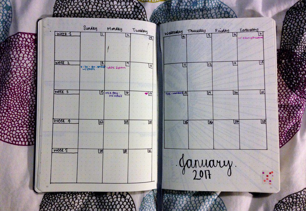 I chose to create a monthly calendar spread to keep track of future dates. Something to keep in mind, which I will be editing for my February spread (see? Editable!): Do you visualize your weeks as Sunday through Saturday, or Monday through Sunday?