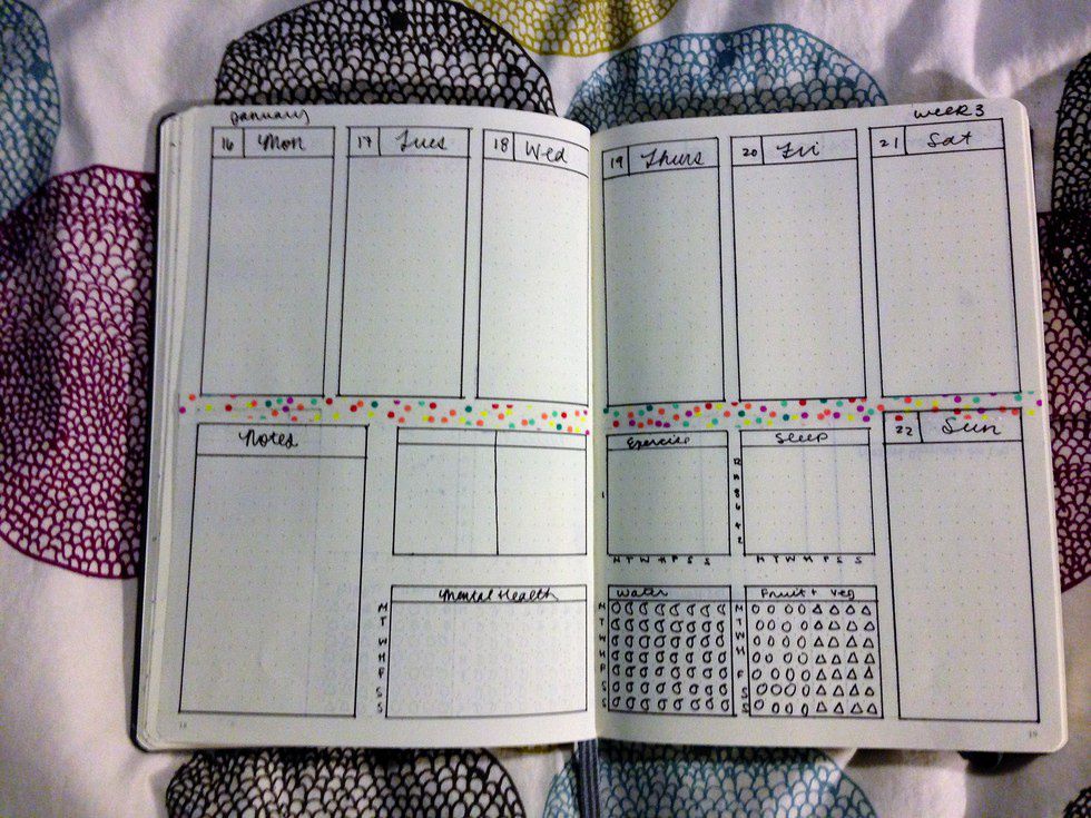 Remember that the idea is to make it all about you. What do you want to focus on? Give yourself five minutes at the end of each day to reflect on yourself, your day, and your progress. Bullet journals are entirely about focusing on whatever you need!