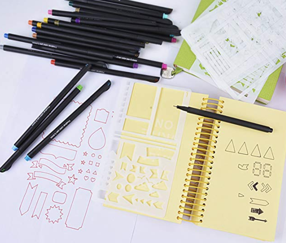 Try using this Bullet Journal starter pack, complete with pens and stencils, available on Amazon.