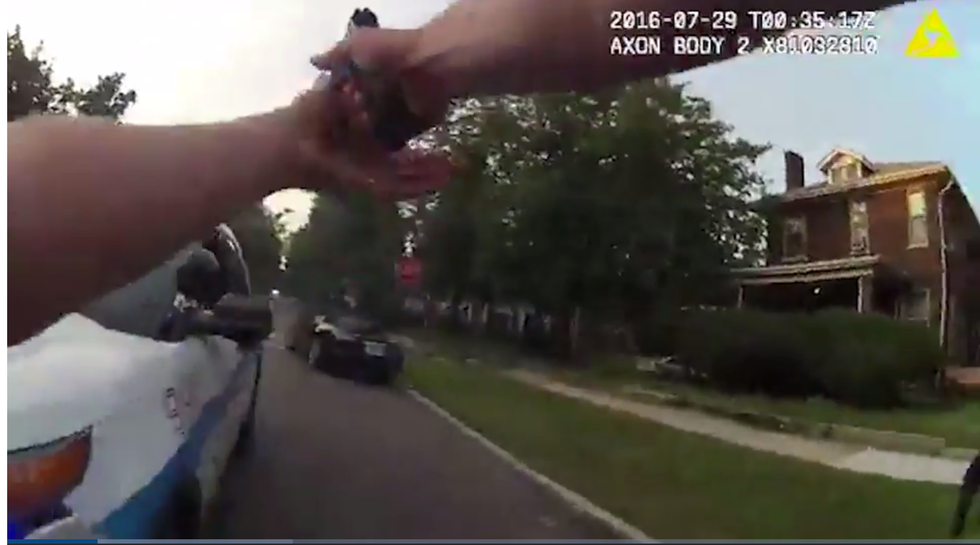 All I heard were shots throughout the video...yet none were from O'Neal. One of the five or more officers surrounding him as they tried to handcuff him even said "F-cking shoot at us."