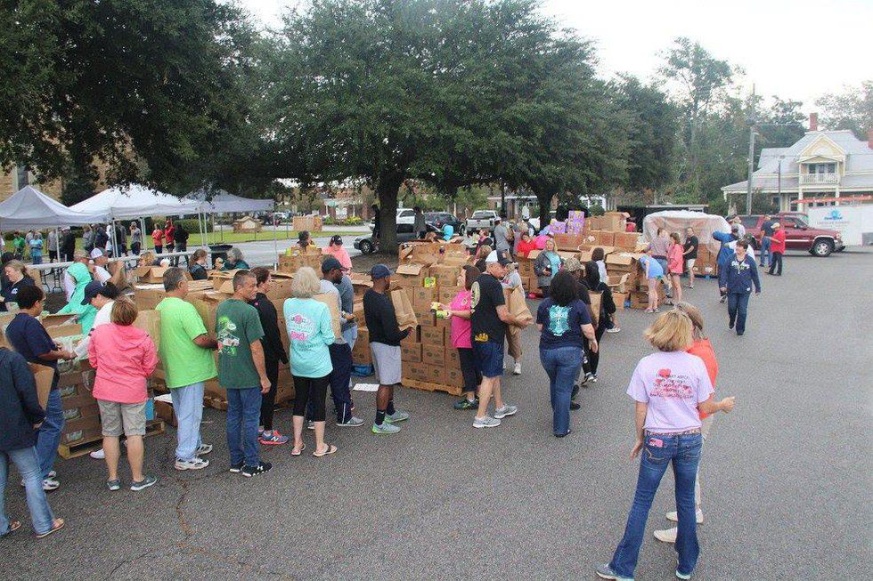 The town stepped up completely. The volunteers showed up, preparing and giving out free food and sandwiches at PoJo's Convenience Store, Southern Cakes Bakery served a free hot spaghetti meal, the soup kitchen at First United Methodist Church opened, and Rebecca's Cafe opened to feed sandwiches and hot meals to those in need.