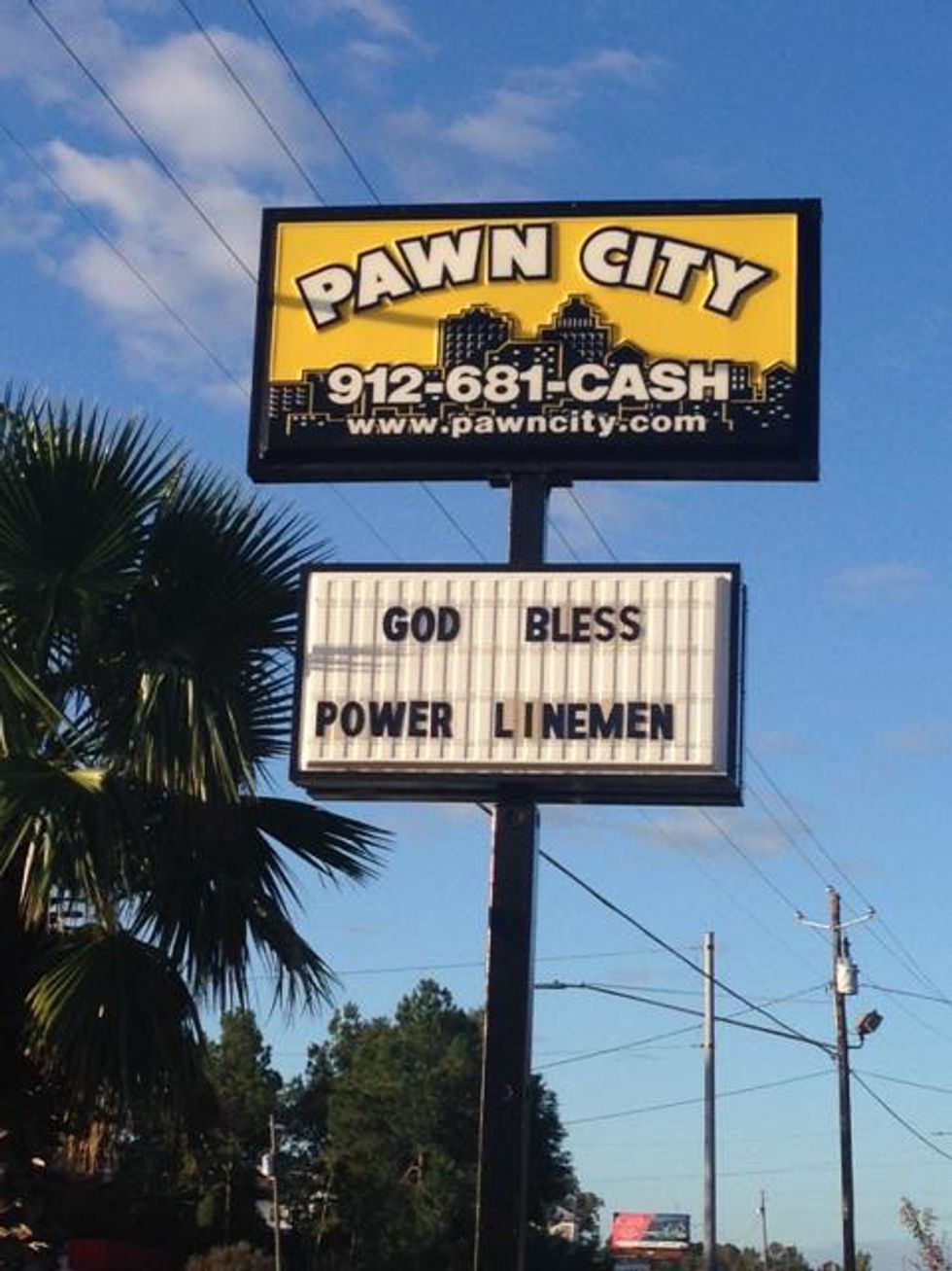 "Hundreds of power linemen- Many of them drove hours to help and slept in their trucks- True Heroes."