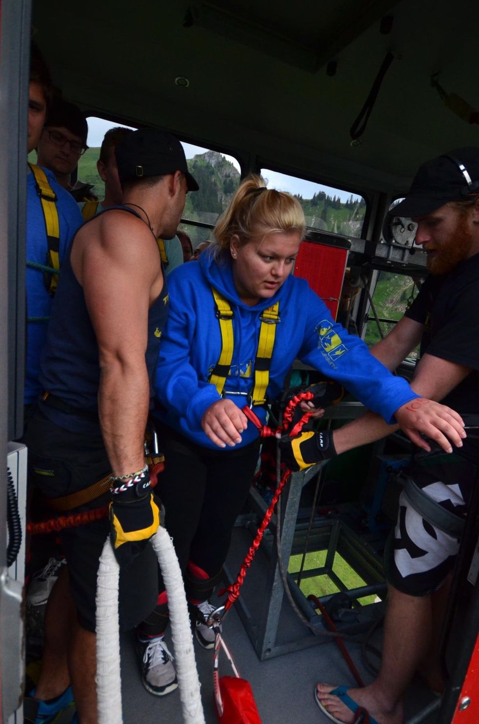After a long hour and a half wait, it was finally my turn to go up in the cable car and do the Stockhorn Bungy. The look on my face should say it all. I was a little apprehensive but ready.