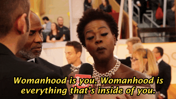 Gender is defined by what society and culture deems masculine or feminine. Sex as male or female is the biological way which you were born. Therefore, your bra does not make you a woman. Your boobs do not make you a woman. In the words of the stunning Viola Davis: