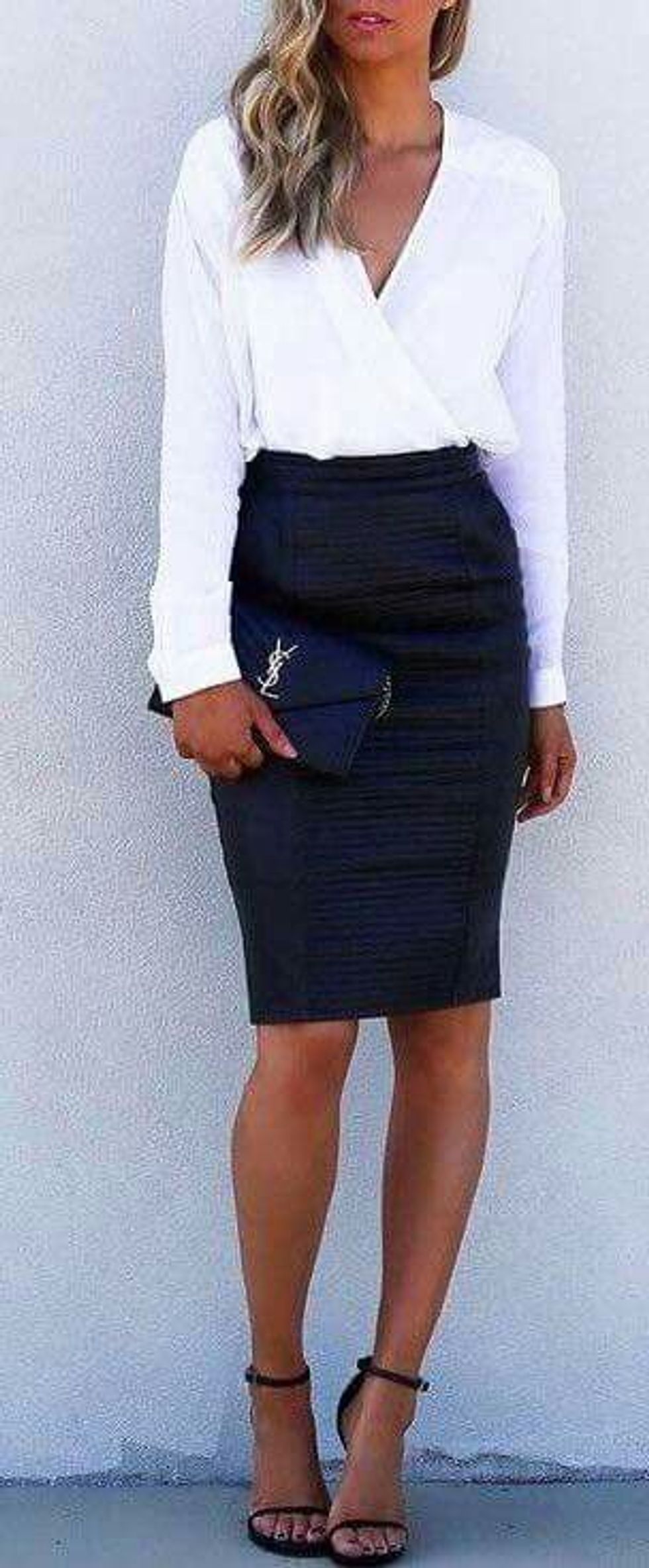 A woman used to feel confined to skirts or dresses in the business realm, but now you see women rocking pantsuits in all settings. That doesn't mean that you can't rock a skirt suit though. I think having a longer skirt that looks professional and fits well adds options. You can mix and match suit coats, pants, and skirts to come up with a variety of looks suited for your different events and moods.