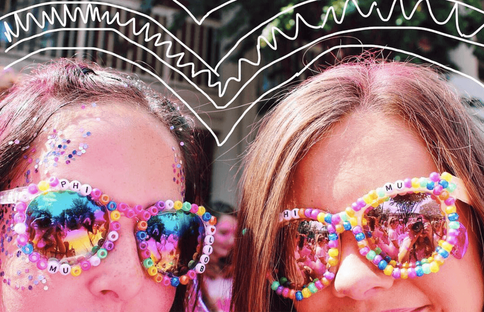 It was the morning of Bid Day 2017 and roommates Lindy and Liz were getting ready to head off to Phi Mu to welcome new members home. As they were getting ready they realized they needed some sunglasses. With this in mind and some extra time on their hands, they then grabbed glasses and the beads nearby to begin decorating their new customized shades.