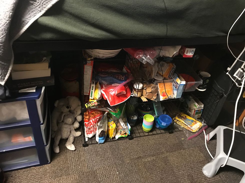 GiphyI bought a combo pack of PRO-MART DAZZ mesh laundry hampers for my dorm room. The smaller square one I put in my closet to hold all my shoes and then I got a taller one for my clothing. I checked the measurements of bed and decided I wanted it half lofted. The taller of the baskets fit under my bed keeping it out of the way. I had to go downstairs to use the laundry and the baskets never broke. I still use them now that I live in an apartment.