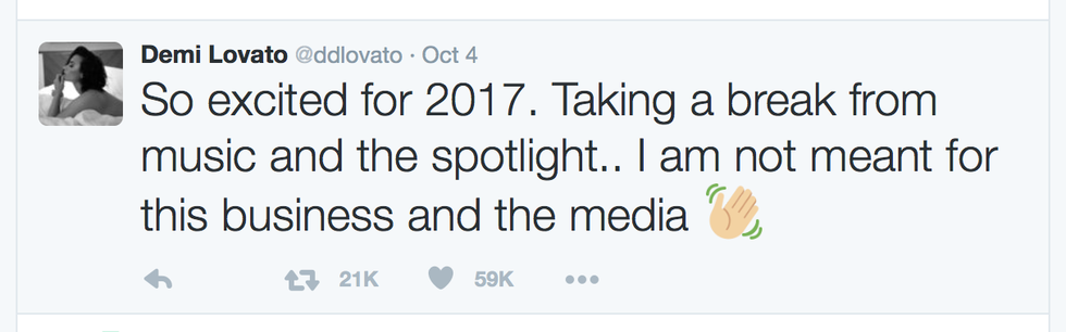 We can thank media more times than none for pushing away some of our favorite people from the spotlight. Most recently, Demi Lovato announced on Tuesday that she is taking a break from the industry. This isn't the first time Lovato has left the spotlight; with her one day disappearance this past summer.