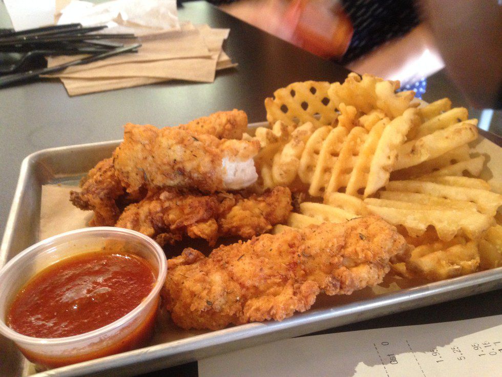 It was Sunday morning after church and my group decided we'd like to surprise our friend, Alyssa, for her birthday with a trip to a cute cafe. A long line wrapped around the original location we hoped to visit, so we explored other options on Yelp and stumbled upon Cafe Bruxie in Brea. We later discovered the menu mainly featured savory and sweet waffle sandwiches with a couple other waffle style options like waffle cut fries with chicken tenders and salads served with a waffle crisp. The cafe's simple menu offers enough options to satisfy various tastes, a perfect match for my indecisive mind.