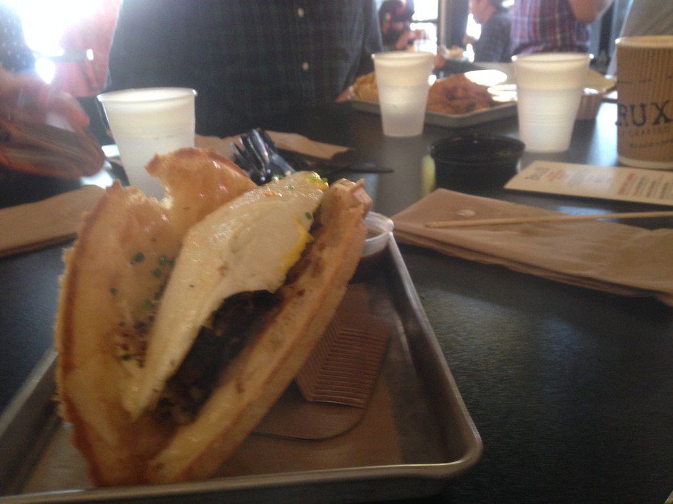 After tasting my savory dish, my inner waffle lover became excited to divulge in the creme brulee and banana Nutella sweet waffles we ordered. My friends grabbed a cup of bold, fair trade coffee to accompany their entrees. My barista self skeptically sampled the hot beverage, but the coffee lived up to my high standards for strong drip roasts. Bruxie offers other espresso beverages and noncaffeinated drinks like chai lattes in addition to their standard cup of coffee.