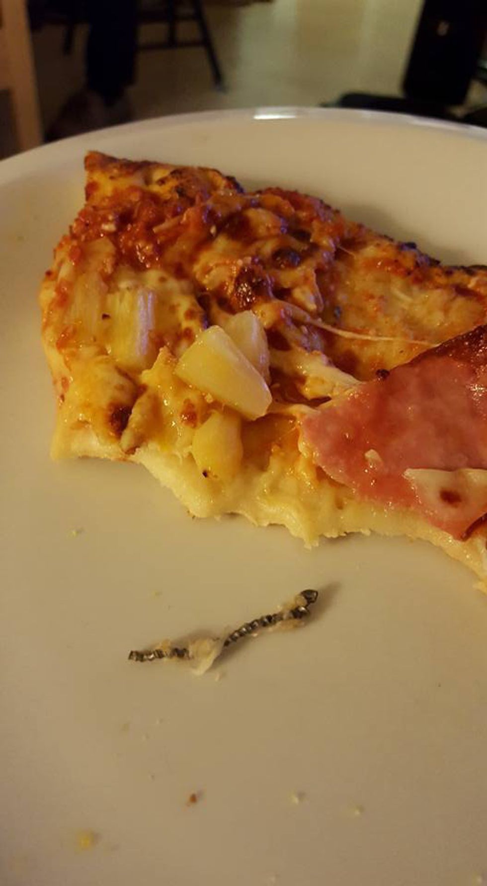 Yes, an actual metal screw was found embedded into the cheese of this pizza.