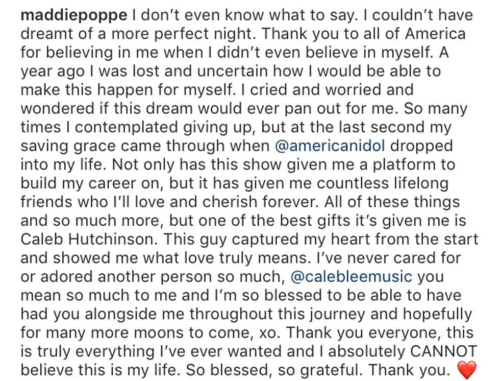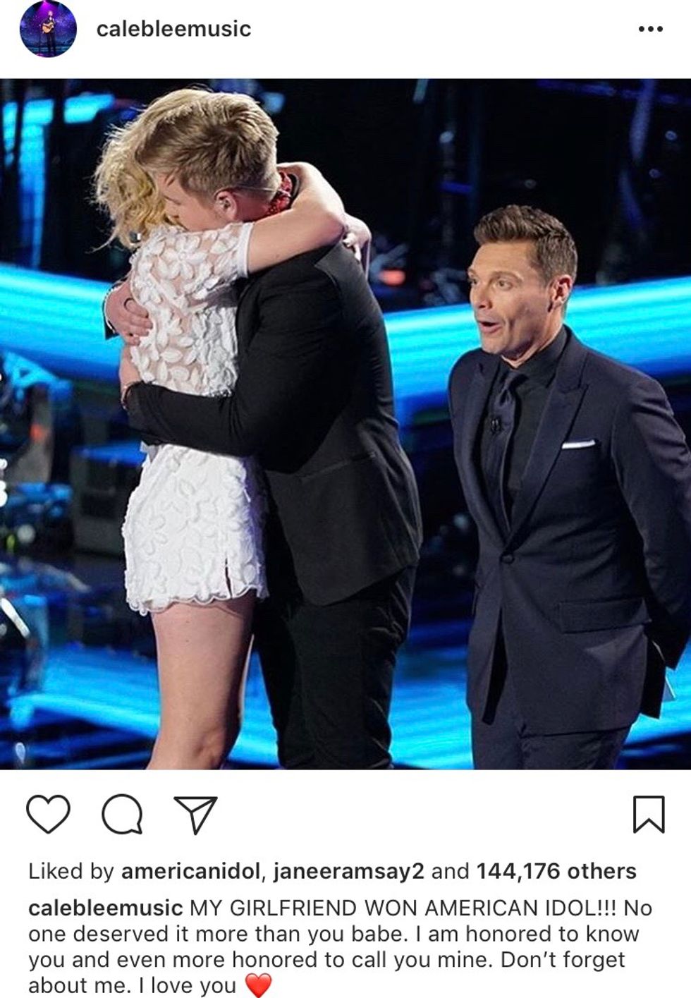 You can imagine winning a show like "American Idol" would make you too busy to ever check your phone, but she took time out of her busy day after her win to thank "American Idol" not just for the win, BUT FOR CALEB MOST OF ALL.