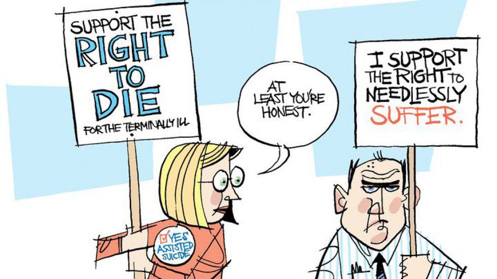 This bill is groundbreaking as it offers patients who are in unimaginable pain another option than to simply wait for death. It offers patients the choice to comfortably say goodbye to their loved ones and pass away peacefully in their own homes. It offers a sense of self- respect to many patients who have opted to be medically assisted in death. Matt Fairchild is terminally ill with melanoma in both his brain and his bones. He is in constant pain and on an incredible 26 different medications daily. In an interview with Kaiser Health News he stated he feels calmer knowing the law will become effective in just a few months. When it's time, he said, having a prescription will enable him to say goodbye to family and die in his sleep instead of suffering through intense pain, nausea, or seizures.