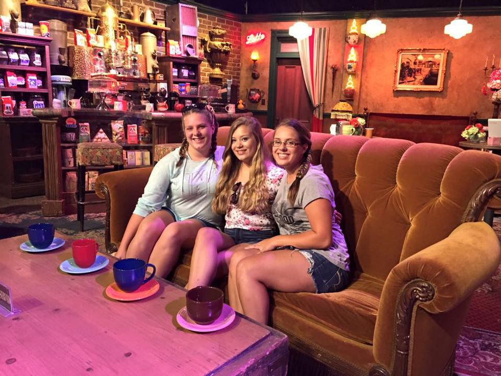 At Warner Bros. Studios on the original set of "Friends" with my Phoebe and Monica.
