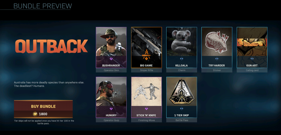 One thing that's missing from the DLC is any mention of the bushfires or fundraising for relief efforts. And as the best-selling game of 2019, it could be a formidable fundraiser if Activision becomes so charitably inclined. The DLC pack sells for 1,800 "Call of Duty Points," an in-game currency that costs roughly $1 per 100 points but gets cheaper the more you buy.