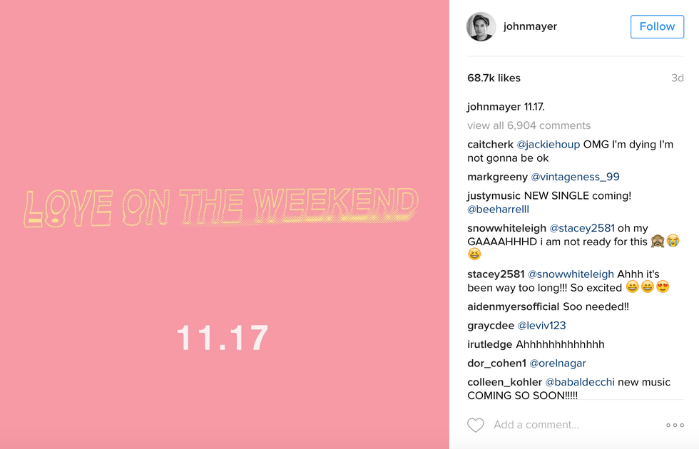 On November 10, Mayer shocked us all with an Instagram with the caption, "11.17"