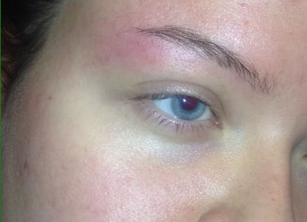 It hurt like a bitch at times, I will not lie to you. You can see from the picture that my eyebrow area was red and swollen. It's difficult to tell, but there was some minor bleeding in two or three spots, as well. So all the girls on Instagram that claim that eyebrow shapers are a "painless hair removal" product sent from God himself are lying straight to our faces.