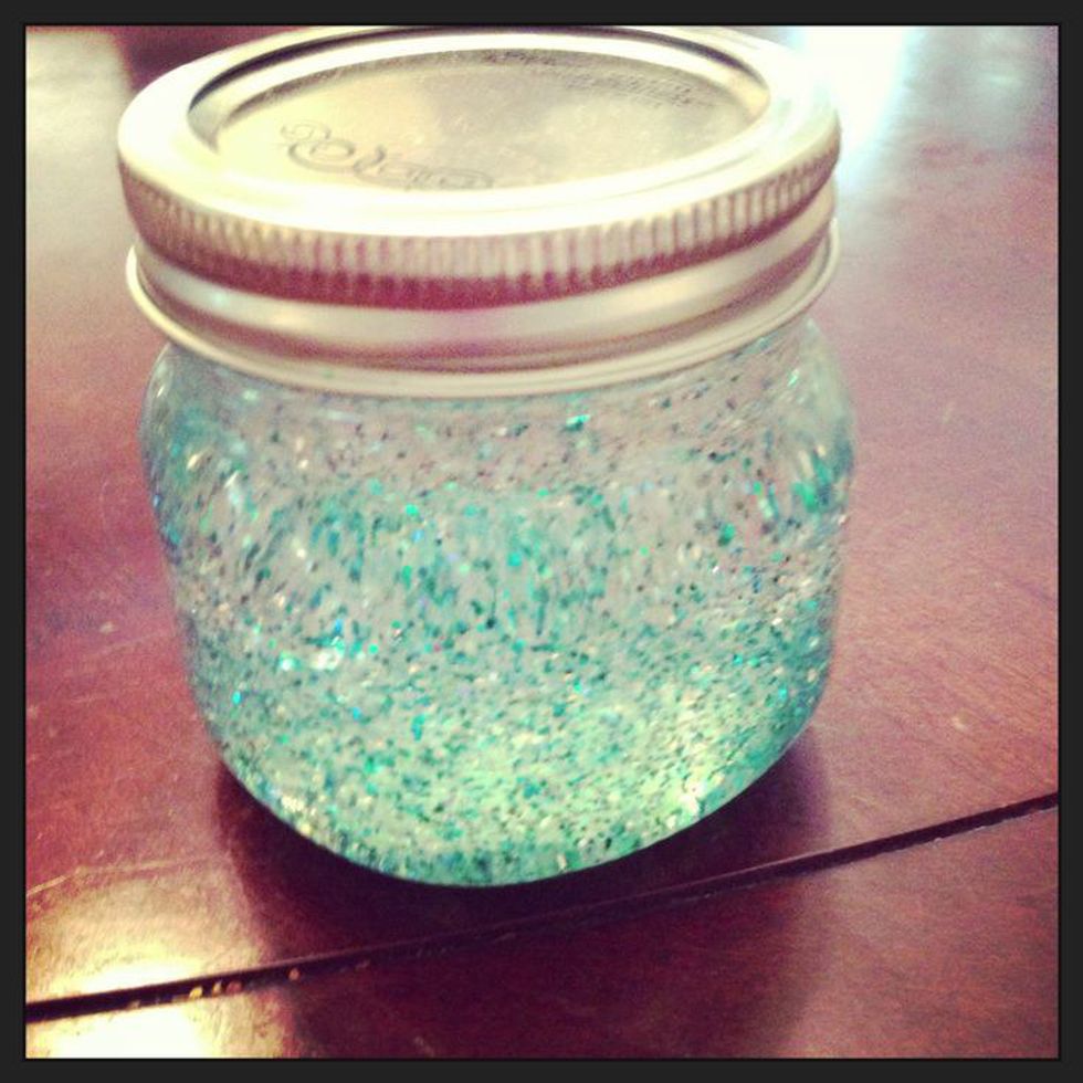 Being rather fond of sparkly things, this is one of my personal favorite tips. You get a mason jar, fill it most of the way with water, and then add a few hearty spoonfuls of your favorite color glitter. The idea is that you shake it up, and then focus on watching all of the glitter settle. By the time the glitter is all settled, your breathing should be returning to normal.