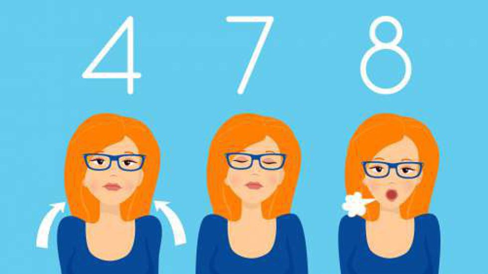 This kills two birds with one stone: not only does it calm you down, but it can help you fall asleep too! It's also super subtle, so if you don't want to alert unsuspecting neighbors, this is your friend. You breathe in for 4 seconds, hold it for 7, and then exhale for 8. The reason this little trick works is because typically breathing is very shallow during anxiety attacks, and this forces you to take in more oxygen, forces the oxygen to saturate your blood, and forces you to expel all of the carbon dioxide from your lungs.