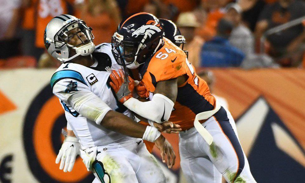 However, during this season alone he's had some pretty questionable hits, including several in the Panthers' Week One loss to the Denver Broncos where Newton took several hits to the head. Only one helmet-to-helmet penalty was called. In the Panthers' Week Four loss to the Atlanta Falcons, Newton took another hit resulting in a concussion and a missed game the following week.