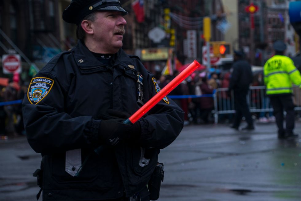 To emphasize the authority of the officer, I took this picture from hip height, looking slightly up at him.