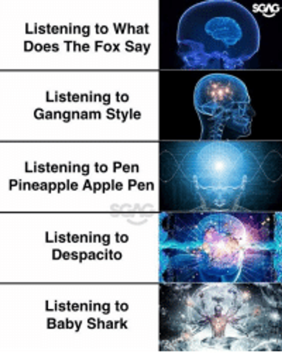Baby shark, do do, do da do..... if you're interested in learning, lmk and your child will be satisfied for YEARS.