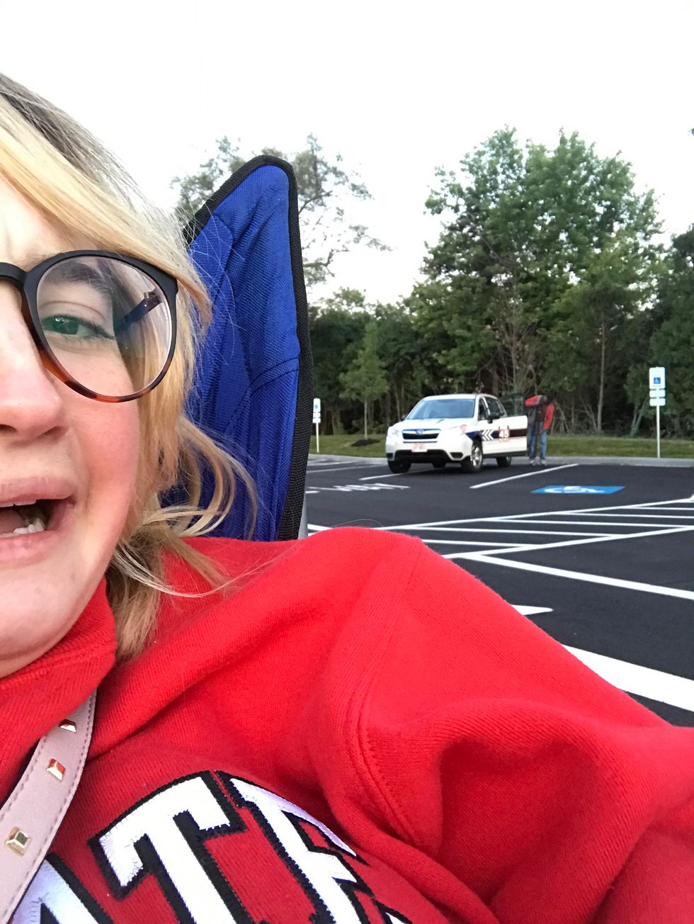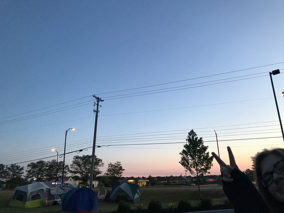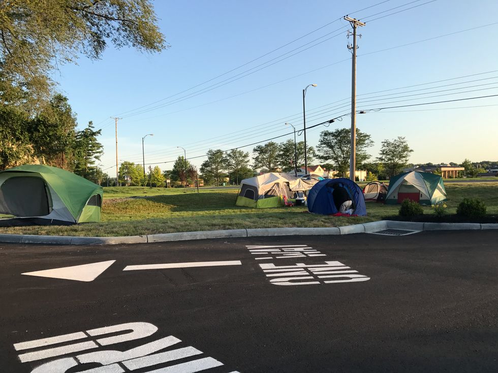 My friend gets off work and comes to pick me up. I'm excited, although a bit concerned. I've got jeans, an Ohio State sweatshirt, fuzzy socks, two portable chargers, my wallet, a lawn chair, and a blanket. I'm not really sure what you're supposed to bring to these kinds of events. I've never really pulled an all-nighter for anything, let alone a fast-food restaurant, so I was unprepared, to say the least.