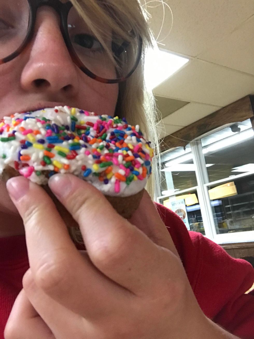 Jenna has to go to the bathroom. The closest place open 24 hours is the infamous Bill's Donut Shop, so we drive 5 minutes down the road to use their bathrooms. We feel bad, so Jenna buys a dozen donuts. The guy at the counter finds our adventure hilarious. I realize at this point I'd rather just cry.