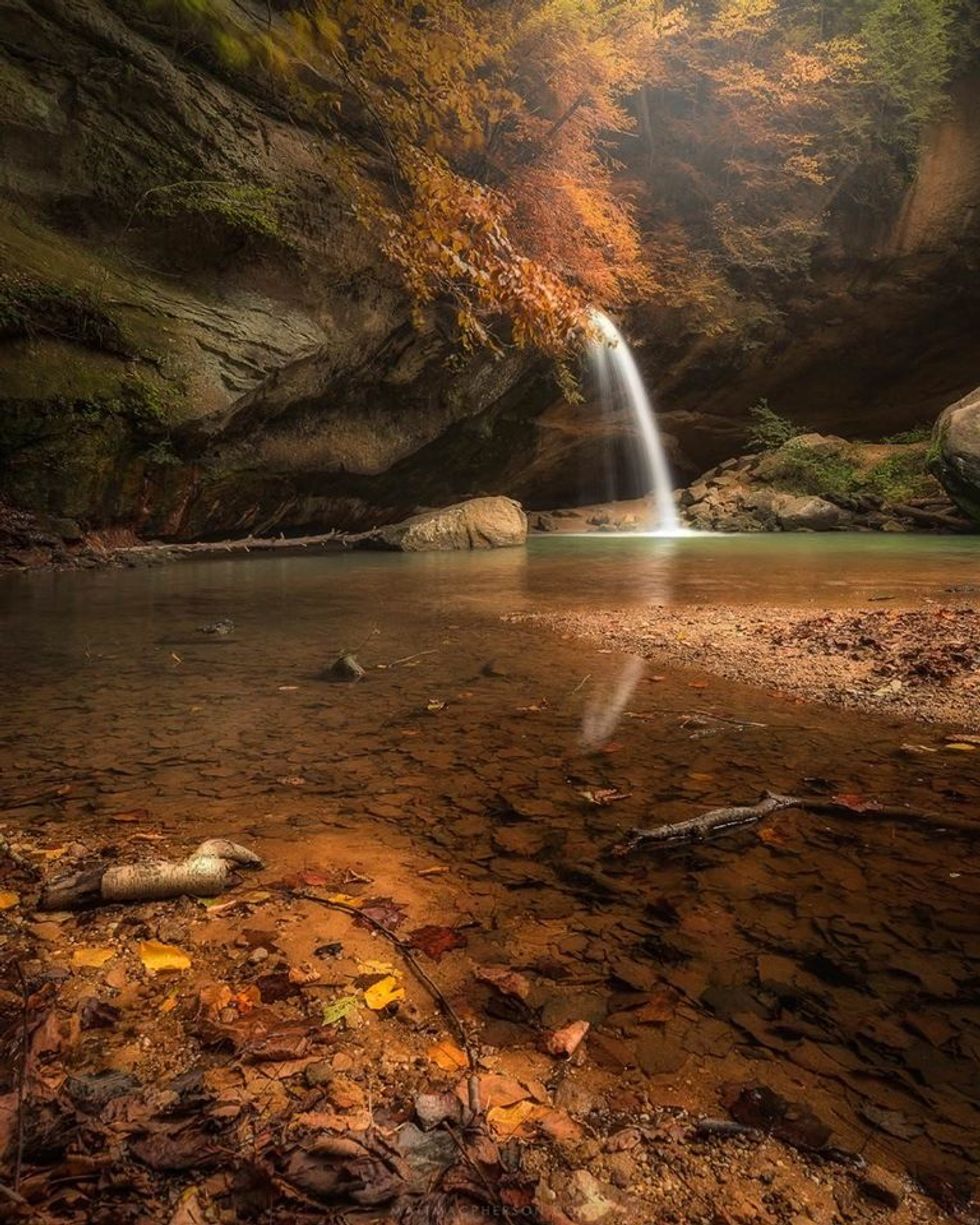 Hocking Hills State Park has an abundance of caves, waterfalls, and lakes. Theres no shortage of things to check out and do such as rock climbing, kayaking, canoeing, swimming, fishing, hiking, sight seeing, horse back riding and much more. As if visiting isn't cool enough, they have over 200 campsites available, but they're in high demand so it is recommended to reserve them in advance!