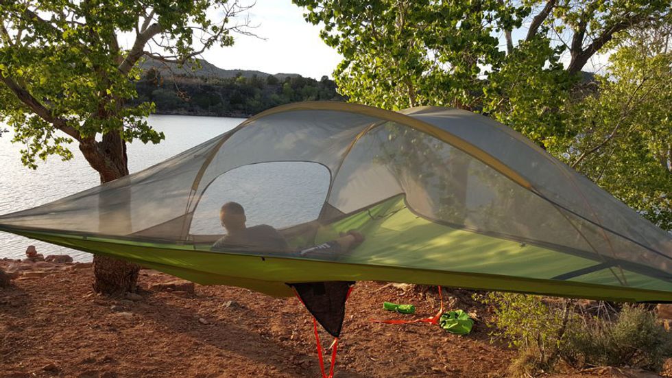 Thus, the hammock tent was born! It's literally a hammock with a bug net over it to keep you comfortably suspended. Some are shaped like regular hammocks, others are shaped like miniature tents.