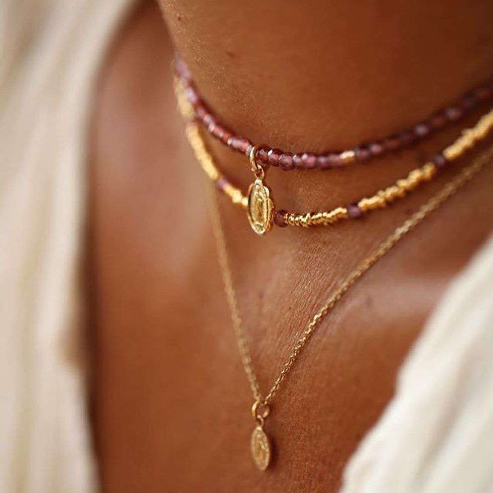 A trend that began in the 90’s, these tight fitted necklaces are making a comeback. This time, it has reached its peak in the fashion world be being paired with an additional more loose necklace.