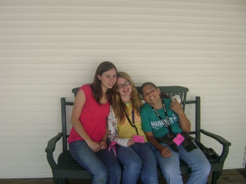 When I was just 10 years old, I had the privilege of meeting one of my best friends at a Christian summer camp located in Western PA. I didn't know at the time that she was going to become one of best friends. In fact, I met her for the first time and was frightened by her fierce personality. Not only was she not afraid of anything, she was also a really strong go-getter and never backed out of any challenge. Speaking out of experience, I had to overcome my fear of her to actually be her friend. I had to be able to adopt her crazy habits of catching salamanders near dirty bridges and making "milk cannons" in the camp dining hall to shoot people with little paper wrappers behind their backs. I had to learn how to adopt her mischievous way of thinking, but regardless of what I thought was an ideal friendship with another person, I have never regretted any single mischievous moment spent with her. It takes a lot of courage on the end of our street to be able to let go of all judgmental notions and ideas to become a friend. Had I not been so wrapped up in being afraid of her, I might have been able to become a better friend from the very beginning. I think it is so easy for us to become caught up in the idea of people. It can be so easy to judge the personality and physicality cars that they drive on our side of the friendship street. Thank goodness for throwback pictures and for friends who will NOT judge us for our stylish, middle school pasts! Below is a picture of one of my best friends (far RIGHT) and I with our counselor (far LEFT) at camp.