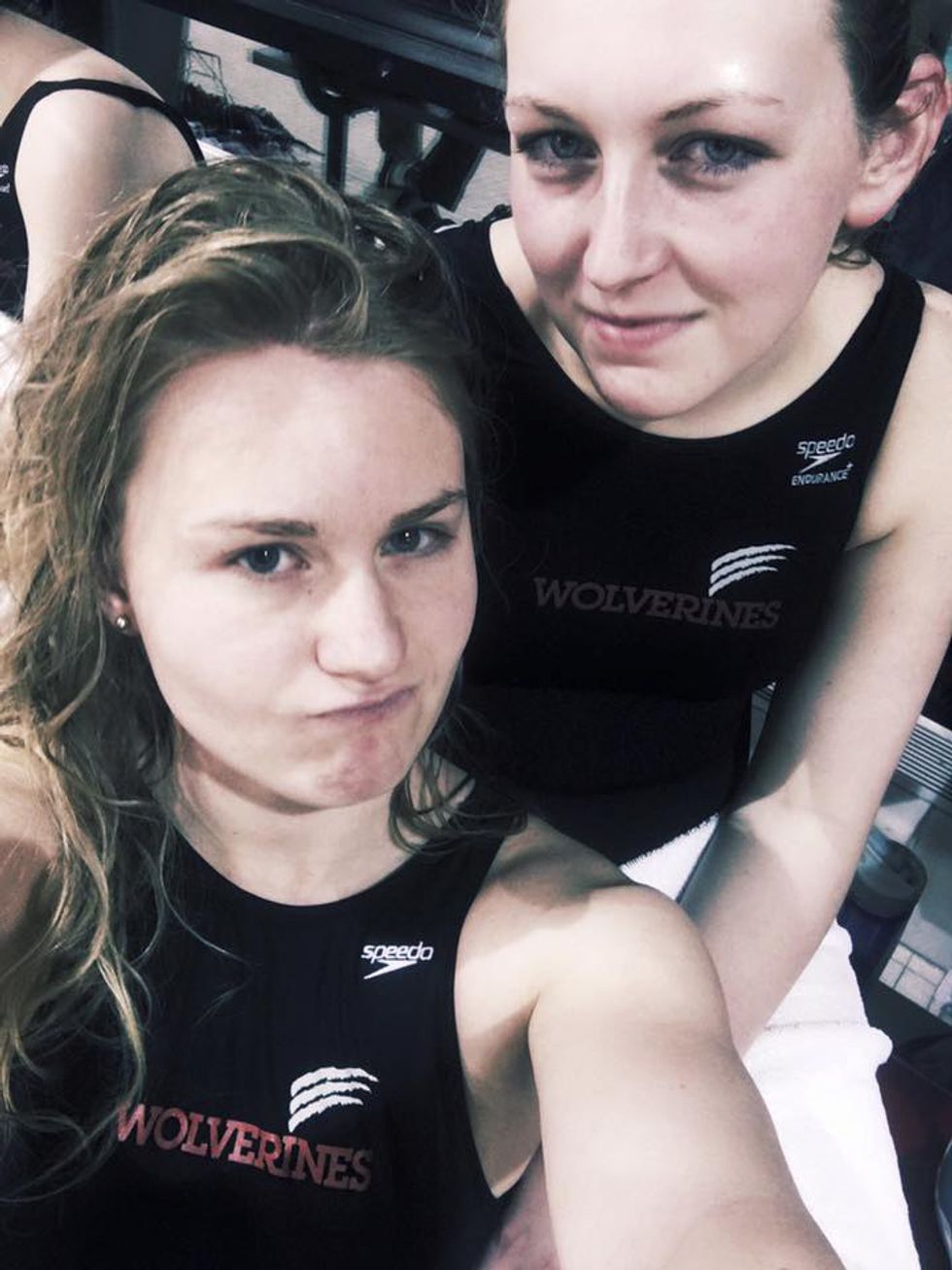 Moving into camp for the week can be scary, but moving into college is quite a leap of faith. Come to think of it, there were plenty of times freshman year where I had to make leaps of faith as an introvert and step outside of my comfort zone to go out of my way to make new friends. Although my roommates and I deemed ourselves "The Hermits of Room 153," I had no choice as an introverted freshman but to socialize a little bit come the start of varsity swim season. Eventually, I had to step out of my hermit hole and socialize with people other than just my roommates. I had to make an effort to become friends with other swimmers on the team. There was one girl on the swim team I knew in particular that was in a lot of the same classes as me, and I really wanted to be her friend. Some could say that I had a huge "friend-crush" on this girl. She was from Mississippi (a class act Southern gal!! How cool!!) and also appeared to be somewhat sane as a swimmer. (For those of you who are non-swimmers, a sane varsity swimmer is a rare breed...). It took a lot of time and patience to reach out to be a friend. Our friendship wasn't exactly a two-way street at first, but through my persistent and (sometimes) creepy efforts, I was able to convince her to take down the orange cones on the end of her street. Apparently, I knew her name way before she could remember mine. She even had to get out her cell phone one time so I could enter my number and NAME (how embarrassing...). Ever since freshman year of college, she has become one of my closest friends on the swim team and has become such a caring sister to me. Looking back, I'm glad that I had to step out of my comfort zone to be her friend even if that friendship wasn't reciprocated for awhile. I am so happy that her sanity keeps me calm on the days where I am off-the-wall insane and that we have each other on days where everything around us is crazy. I've never had to put on a false front in front of her because she has experienced all of my efforts from the moment we first met and can read me like a book now.