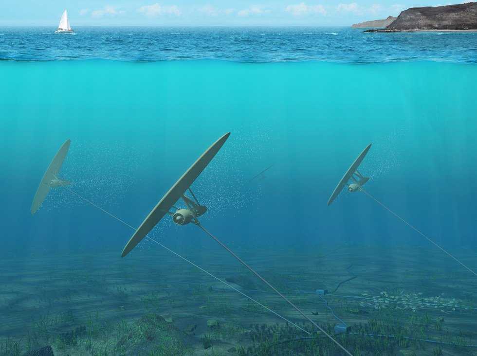 The ocean is also the window to powering the world. Going blue may vastly help efforts to go green. First there is thermal energy from sea vents, but the seawater itself is a wildly untapped source of energy as well. Recent ingenuity has brought about the invention of sea kites: specially mechanized kites that are now being placed underwater with strings attached to turbines. Like a windmill, the currents push the kites causing the turbine to spin and produce huge amounts of energy.