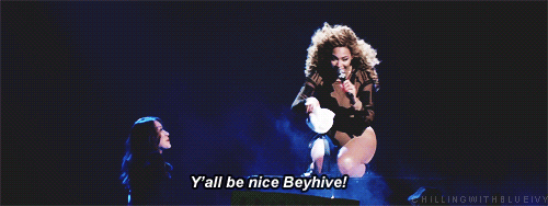 You can't say nothing about Bey without being emotionally and verbally attacked by her fans. People are freakin' passionate. People destroyed Amber Rose when she compared Beyonce's stage outfits and dancing to that of strippers... they said some pretty horrible stuff. I don't know if I want to associate with people that aggressive... Not every single member of the beyhive is vicious, I know that, but speaking generally, it doesn't seem like the friendliest fandom.