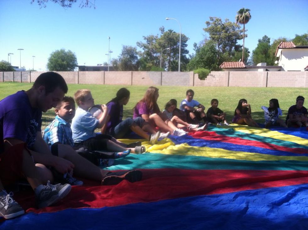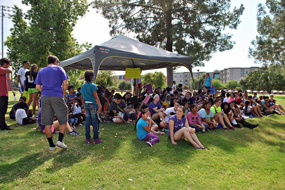 On average, about fifty to one hundred kids show up each week. The GCU students separate the kids based on age. Red Ruble is for ages 3-6 years old. Blue Crew is 7-8 years old. Green Machine is 9-10 years old. Purple Crazy are all kids from Jr. High to High School.