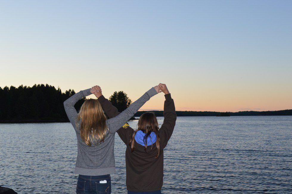 There are so many awkward photos you can take with your friend. It looks so cool online and never turns out the same, but you always have fun taking them.