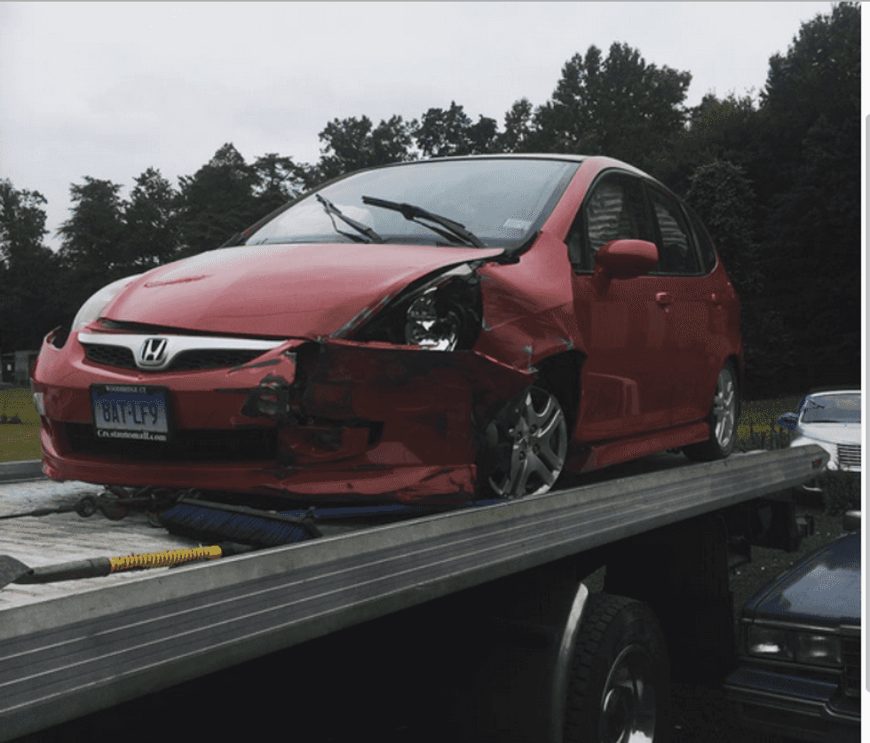 About an hour and a half into the trip, our “adventure” turned into one of the longest day of my life. Around 10 in the morning I was cruising on ’95, staying cautious to keeping a reasonable distance in front of me and driving the speed limit. Suddenly, a black sedan with New York plates and with no knowledge of space, speed limit, or what a blinker is cut into my lane. To avoid hitting him, I slammed on my brake and swerved. Well…I drive, or…drove a Honda Fit, which is essentially a lunchbox on wheels. That car is not meant to swerve at that speed. I lost control of the car and we hit the highway barrier and skidded back into the lane. It all happened in a matter of two seconds.