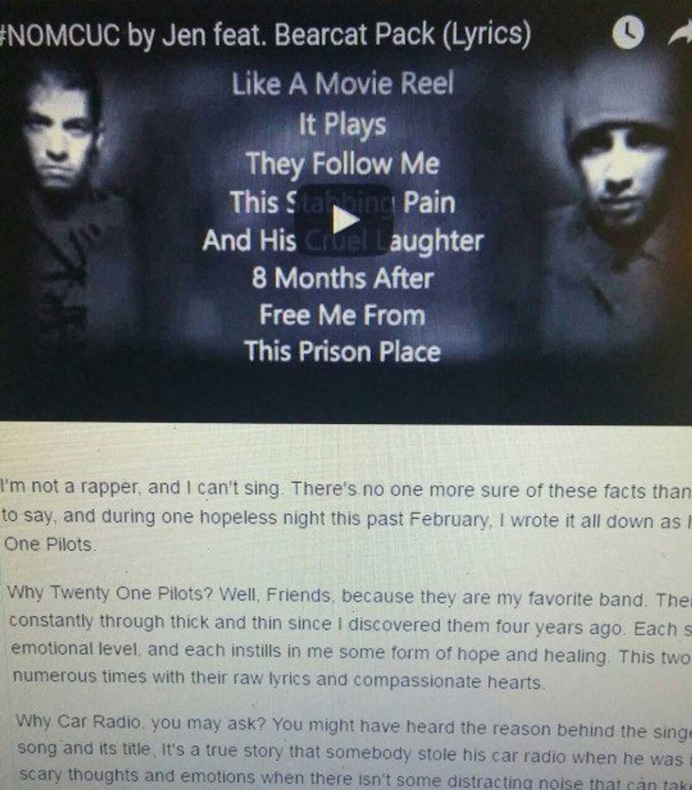 I'm not a rapper, and I can't sing. There's no one more sure of these facts than I am. But I have some powerful things to say, and during one hopeless night this past February, I wrote it all down as lyrics to the tune of "Car Radio" by Twenty One Pilots.