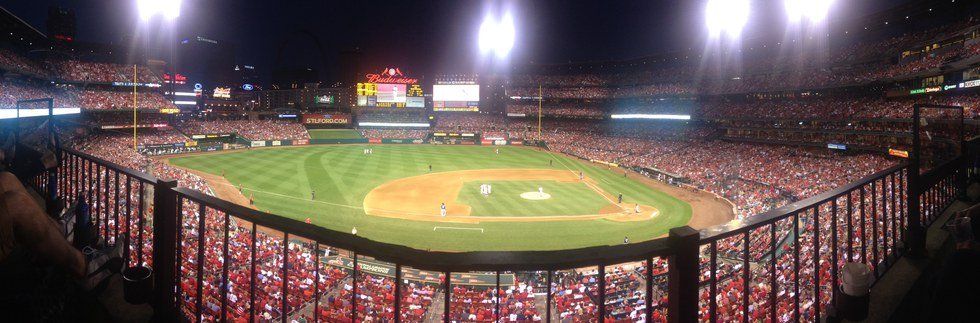 I started dating a Cubs fan a few months after that same series. Our love of baseball is something that simultaneously unites us and distances us, the rivalry between our teams igniting playful banter in the beginning of each season and downright bitterness and aggression by the playoffs. Of course, this aggression never lasts longer than a game does, and at the end of it all we are just happy that we share the same love for the sport. We have attended many games together at Busch stadium, and he happily tags along to watch the Cards play even if the Cubs aren't playing. Of course, he refuses to wear a Cardinals shirt just like I refuse to wear anything Cubs related, but he still enjoys the game and is happy for me when the redbirds win, even if he is a little bitter. Once I asked him why he likes to attend games when the Cubs aren't even playing. He responded that he enjoys the atmosphere of a stadium at game day, the familiar smell of hot dogs and cold beer, the joy that permeates through the crowd. Although his heart belongs to the Cubs, it also belongs to baseball. Just as mine does.