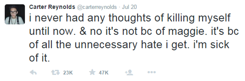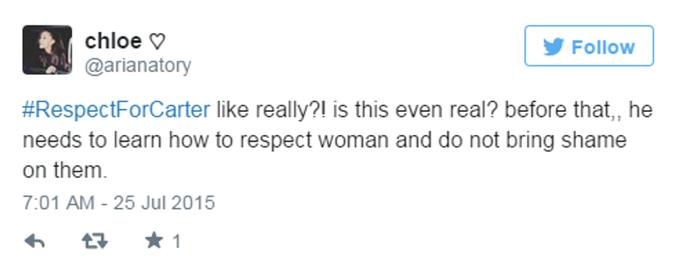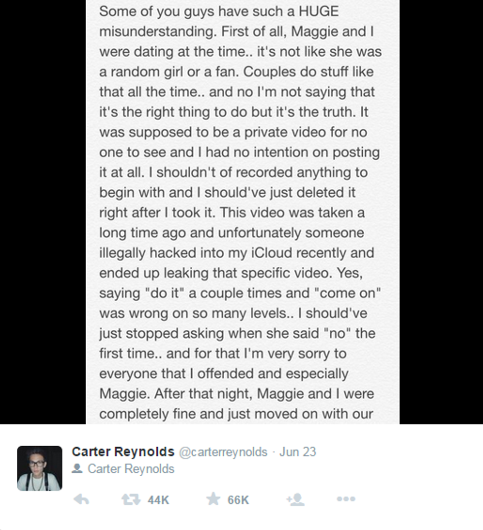 Carter Reynolds may really be a good guy who didn't mean to spread this message. But, being famous on social media comes with responsibility. I do not want my 15-year-old sister who crushes on Vine stars, and others' sisters, believing that this is OK because someone famous said it was OK.