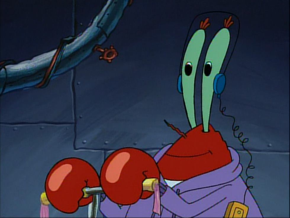 In one episode of SpongeBob, aforementioned crustacean Mr. Krabs captures and harvests all the jellyfish in Bikini Bottom to make jelly for his restaurant. The machinery that Krabs uses to extract the jelly from the jellyfish only runs with Krabs pedaling on an exercise bike.