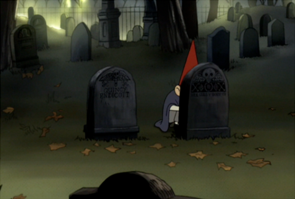 "Over the Garden Wall" references various folklore and fairy tales that all point to the same conclusion: the show takes place in the afterlife. The most obvious evidence for this conclusion is given during the tenth episode, "The Unknown." The audience discovers in the previous episode that Wirt and Greg fell into a river in order to avoid being struck by a train. At the end of "The Unknown," it's revealed that they hadn't ever left the river. It's then inferred that the brothers' adventure through the woods was a death-dream. After every title card for each episode, a distant train engine and whistle are heard, foreshadowing the series' ending.