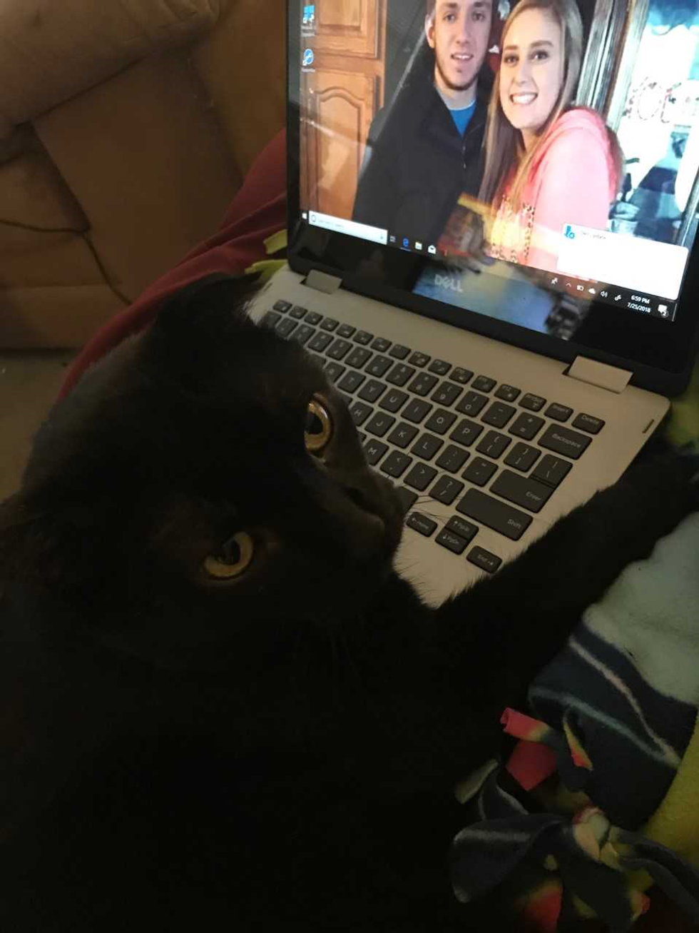 If it's not pawing at my pencil or laying on my laptop, then it's climbing in my backpack. Sometimes he even tries to help me type my paper! Once this happens, nothing ever gets done!