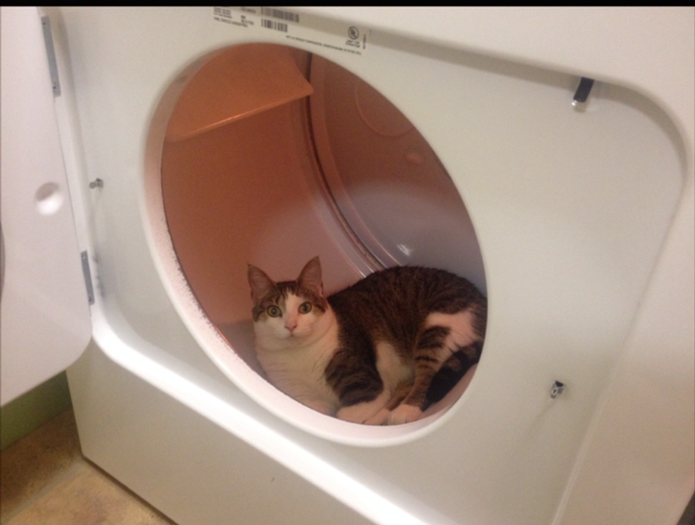 Sleeping in the dryer. No. I know it's warm and cozy, but it scares your cat mom to death to think she might accidentally lock you in there and bake you.