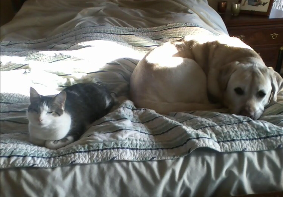Be nice to your big brother, Sheldon. He's a precious, oversized cinnamon roll that doesn't deserve to live in fear under your reign of terror. You already put the fear of god in him the first time you met—you, puffing up and darting in claws first, and him, tail wagging and utterly confused. You two have made amends, and I've watched him grow on you. Hard to hate him, huh? He's too lovable to hate. However, he still tip-toes around you. Ease up. You already know he's not going to eat you. Be nice. Please? (P.S. You two make a wonderful cat loaf and dog donut combo.)