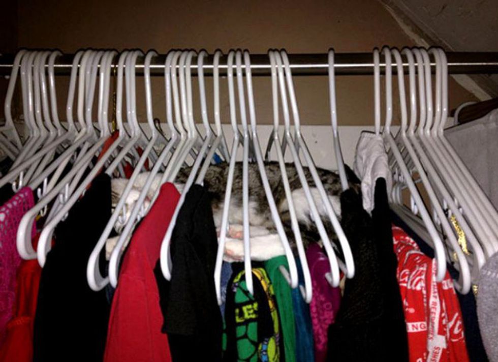 Uh, excuse me, kitty? Can I get in there? No? OK. You rest. Clearly you need all of those hangers.