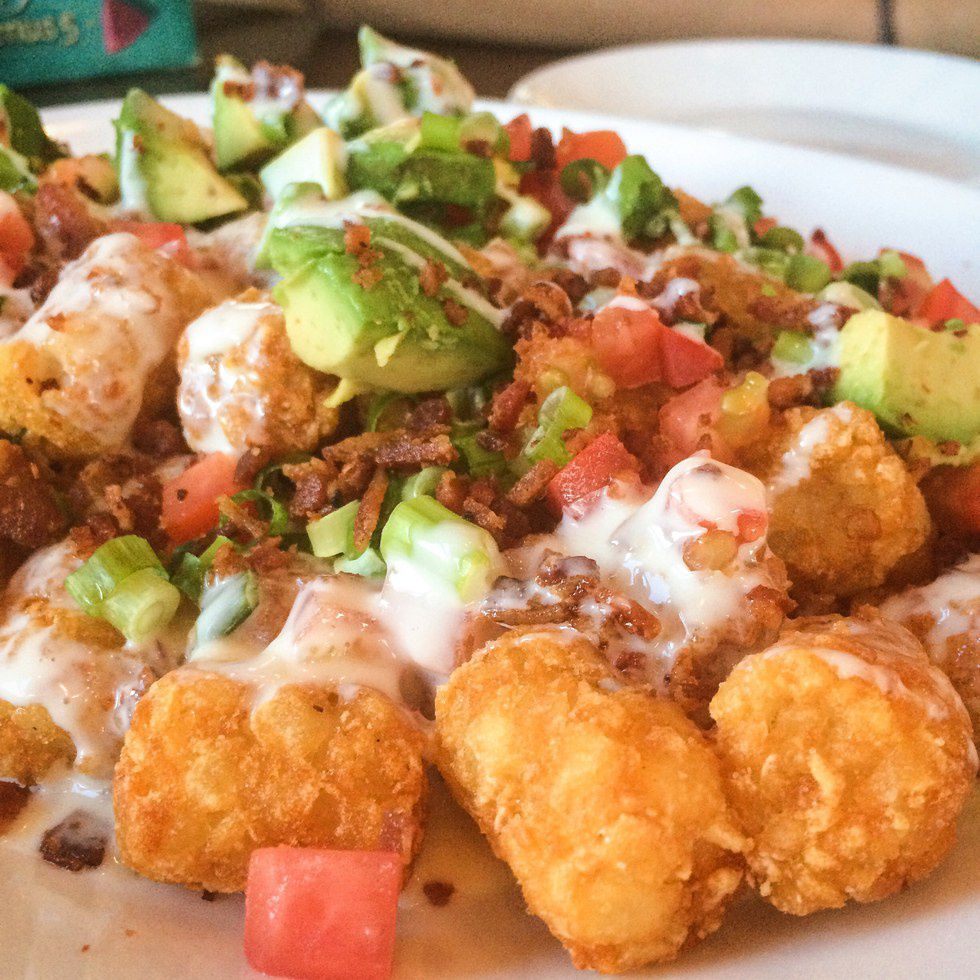 You could really eat this as your main meal if you wanted to! This dish is a plate of happiness, and that isn't an exaggeration -- crispy, fresh tater tots loaded up with avocado, bacon pieces, tomatoes and jalapenos. The chef then douses the entire dish in creamy, melted white cheese. It brings the whole dish together and is the perfect texture complement to the crispy tater tots.